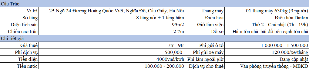 TỔNG QUAN TÒA NHÀ SỐ 25 NGÕ 24 HOÀNG QUỐC VIỆT, NGHĨA ĐÔ, CẦU GIẤY, HÀ NỘI